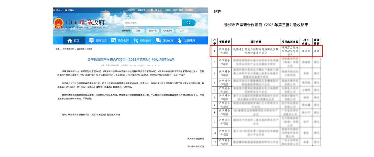 近期,珠海市產(chǎn)學(xué)研合作項目(2023年第三批)驗收結果公示:萬(wàn)力達電氣牽頭湖南大學(xué)、珠海城市職業(yè)技術(shù)學(xué)院合作的《鐵路牽引與電力供配電網(wǎng)絡(luò )高效互聯(lián)技術(shù)研發(fā)及產(chǎn)業(yè)化》產(chǎn)學(xué)研項目順利完成驗收,這是對萬(wàn)力達電氣在研發(fā)水平、技術(shù)實(shí)力、創(chuàng )新人才培養、產(chǎn)學(xué)研合作等方面所作貢獻的高度認可。