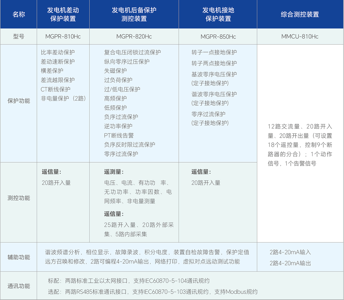MGPR-800Hc系列發(fā)電機成套保護裝置適用于中小容量(100MW 及以下)發(fā)電機成套保護,包括發(fā)電機差動(dòng)保護裝置、發(fā)電機后備保護測控裝置、發(fā)電機接地保護裝置以及選配的綜合測控裝置。本成套保護可單獨組屏,也可以與MTPR-800Hc系列變壓器成套保護結合,組成發(fā)電機-變壓器組成套保護。
