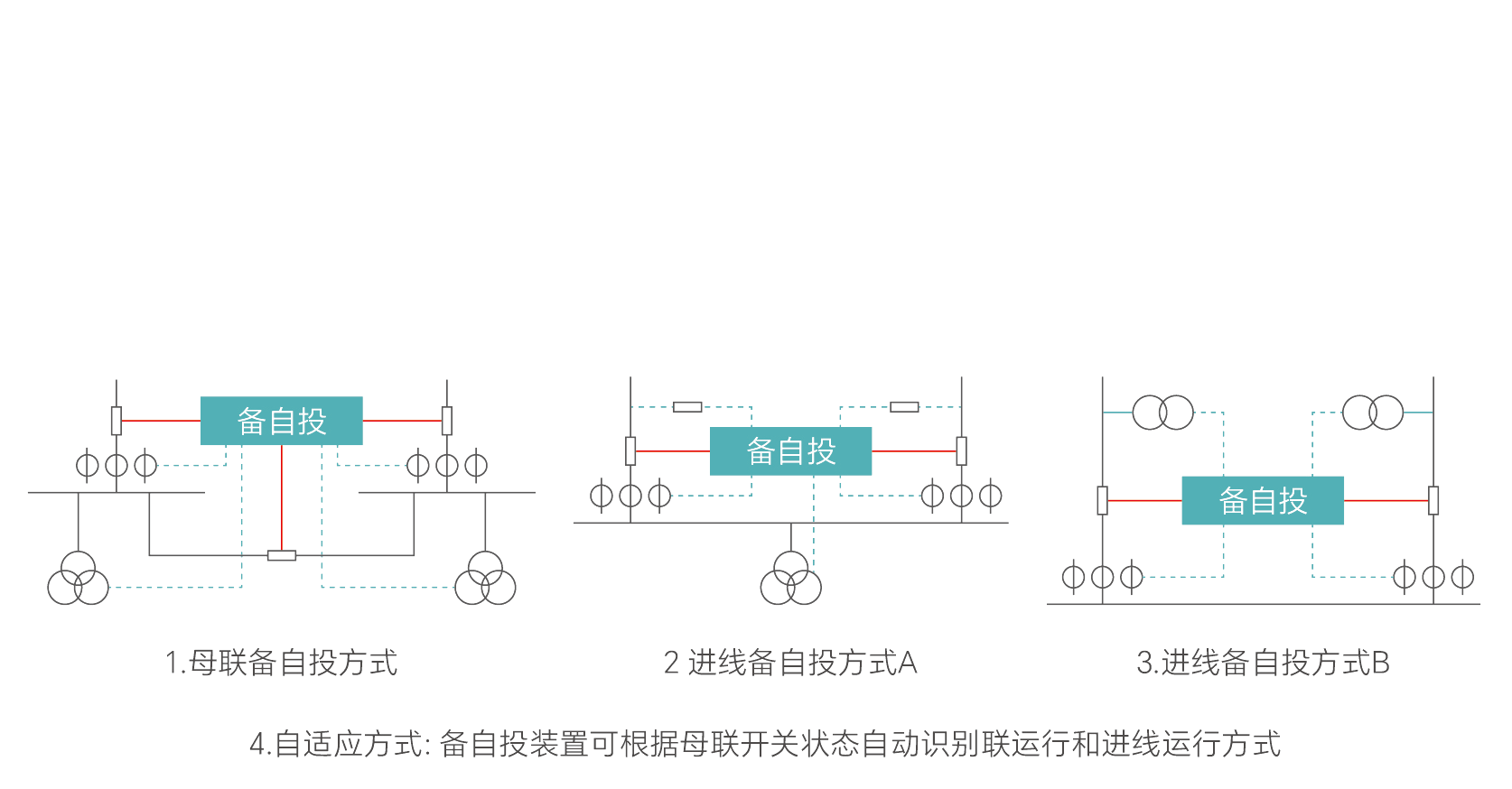 備用電源自投裝置適用于各種電壓等級的備用電源自動(dòng)投切及自動(dòng)復位,可根據系統結構進(jìn)行四種不同形式的自投自復。