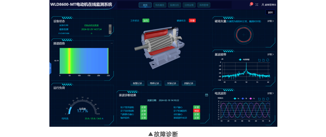 由萬(wàn)力達電氣自主研發(fā)的電機缺陷診斷系統,基于電流特征分析實(shí)現電機健康狀態(tài)的在線(xiàn)監測及故障預測診斷,融合多業(yè)務(wù)場(chǎng)景需求構建運維管理功能應用,提供全生命周期綜合管理,提高電機運行效率,降低生產(chǎn)成本,保證企業(yè)安全生產(chǎn)。