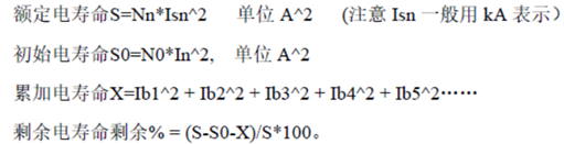 針對剩余電壽命電氣智能化系統則通過(guò)采集斷路器分合閘過(guò)程中的分段電流,結合斷路器出廠(chǎng)額定壽命與累計消耗電壽命,通過(guò)二者差值判斷剩余電壽命,其計算方法為: