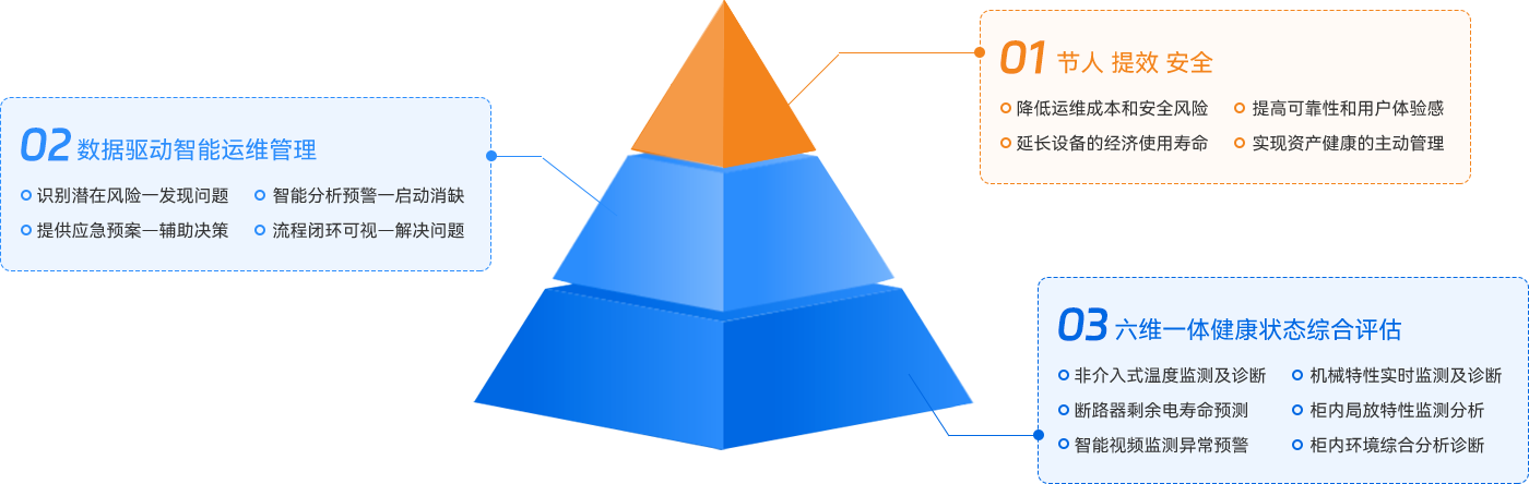結合系統高級應用,通過(guò)人工智能、邊緣計算等技術(shù),建立各種特征模型,實(shí)現開(kāi)關(guān)柜健康狀態(tài)的“自我感知”,完成對設備潛在隱患實(shí)現預知、預測、預判,實(shí)現故障定位診斷、狀態(tài)評價(jià)并提前預警;實(shí)現計劃檢修為狀態(tài)檢修,達到“節人、節事、節能”及安全生產(chǎn)目的,滿(mǎn)足無(wú)人值守及智慧工廠(chǎng)的發(fā)展需求。